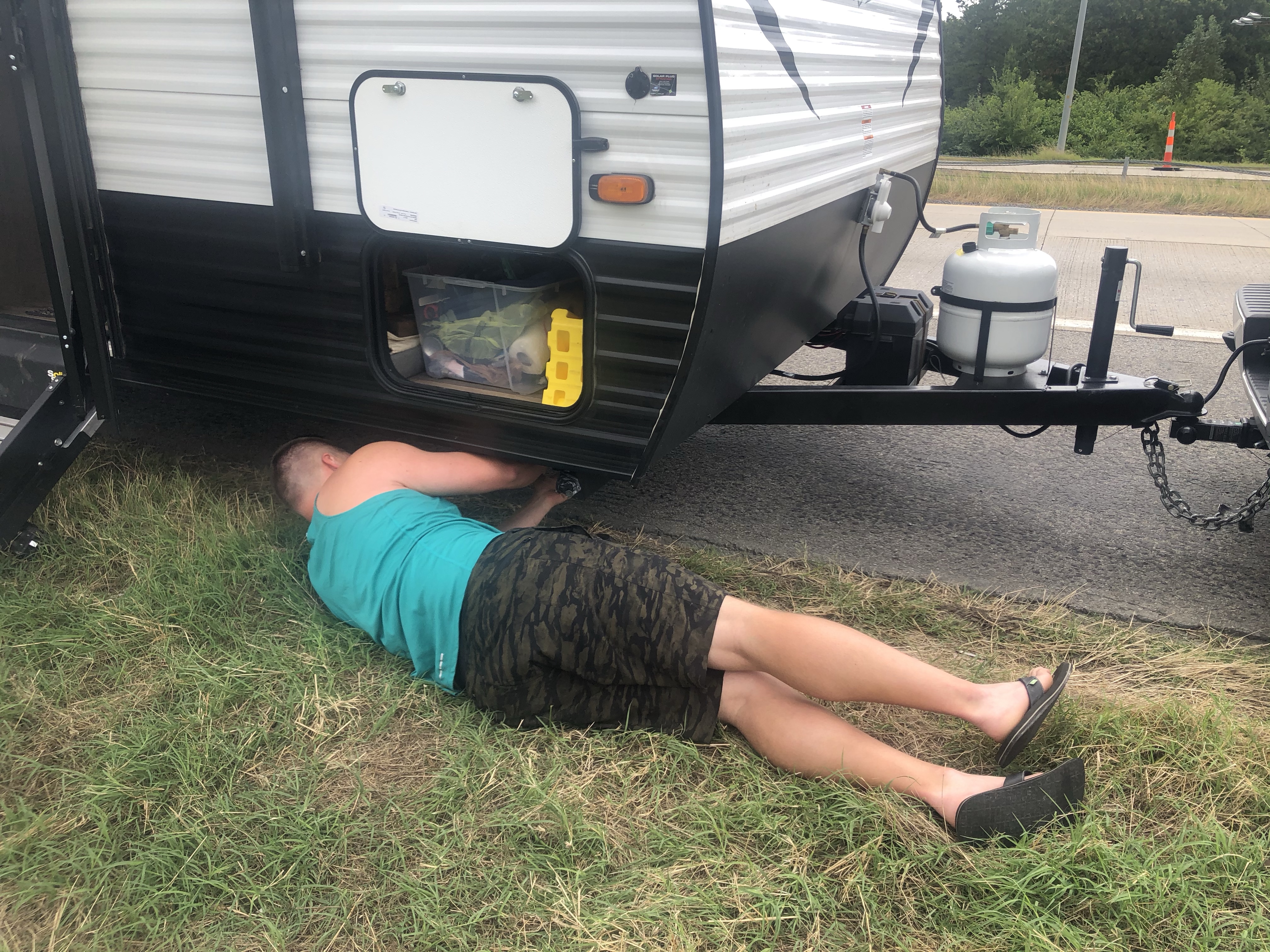 After I finished cleaning, I went to Discount Tire to have my tires rotated again. I think all of the chunks of tire in the roadways down South had me a little nervous to continue our trek without having them rotated. Even though I had them done before we left, I surpassed the recommended 6,000 miles a few states back! On the way, I dropped Ashton and Mason at the skate park for Ashton to collect a few more war wounds for the road. I took a few updated pictures today, but also note that he chose to gear up better than the past few days!