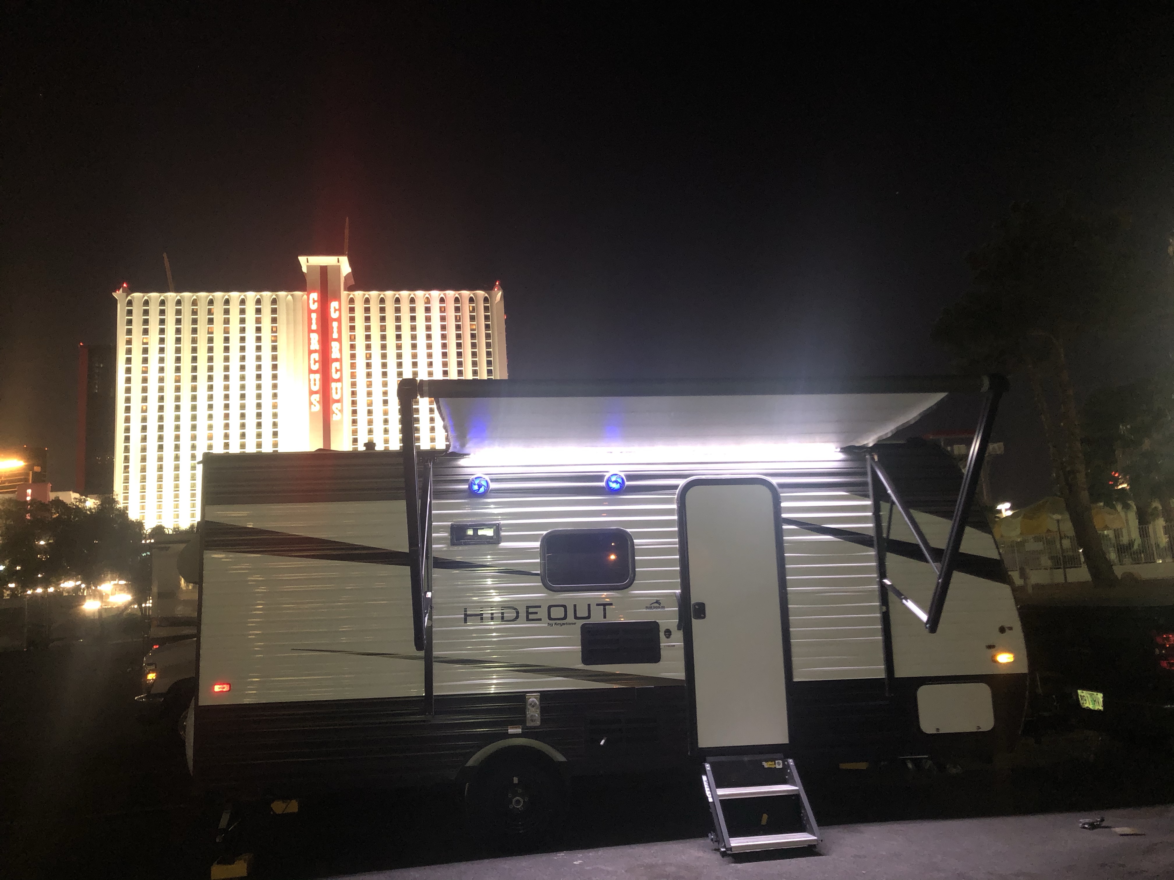 After returning to the trailer we got showered and cozied in for the night! What a whirlwind experience. One minute we are hanging out with friends in Arizona and the next minute we are CAMPING on the Las Vegas Strip!